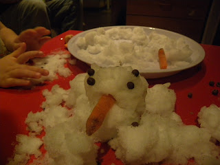 zatem razem z Dzidziongiem przynieśliśmy do domu worek śniegu na domowego bałwana - zabawę tę już nie raz przerabialiśmy w domu, polecam Wam nawet jeśli dzieciongi są zdrowe ;)